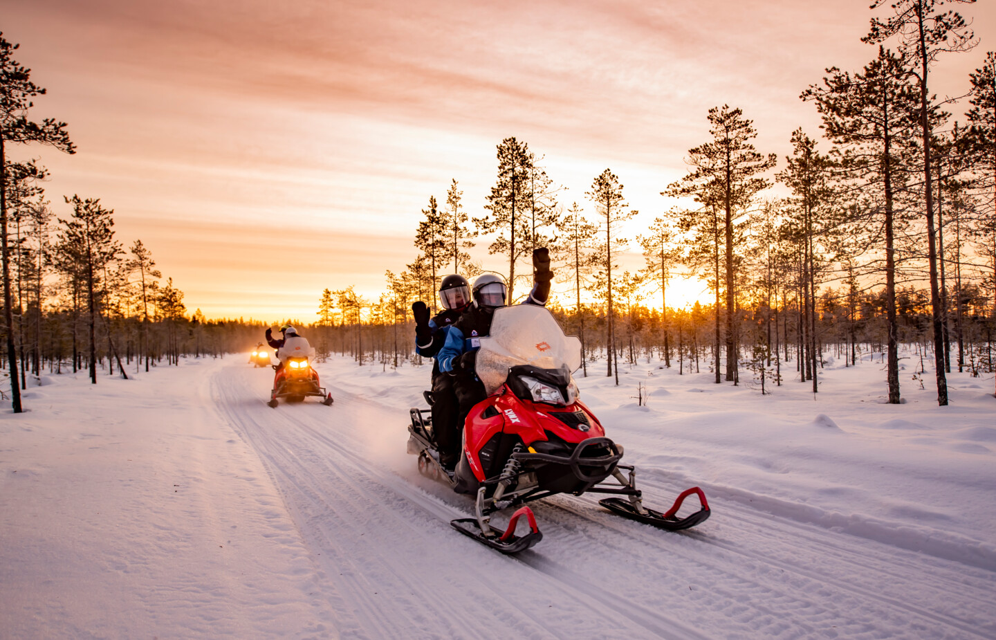 Das winterliche Lappland wird mit dem Hundeschlitten und auf Schneemobilen erkundet.